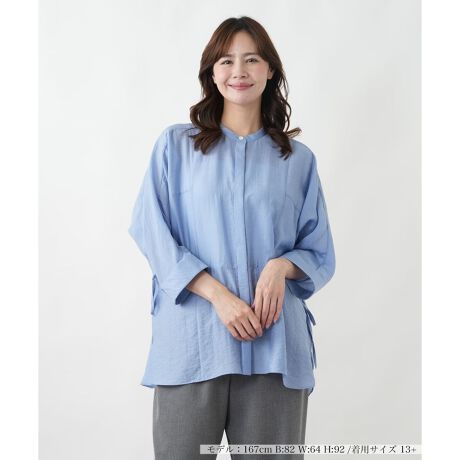 ロシャスで定評のある、上質な透け感が美しいシアー素材のブラウス。素材の持つ上品な光沢と、洗いざらしのような自然な凹凸感が、シンプルながらも奥行きのある表情を演出します。すっきりとしたスタンドカラーと軽快な七分袖が、クリーンで知的な印象を与えます。ご自宅でお手入れがしやすいので、汗ばむ季節にも気兼ねなく着用できるのが魅力。ジャケットのインナーとして、または一枚でさらりと着こなして、その上質な素材感を存分にお楽しみください。日々の装いをクラスアップさせてくれる一枚です。