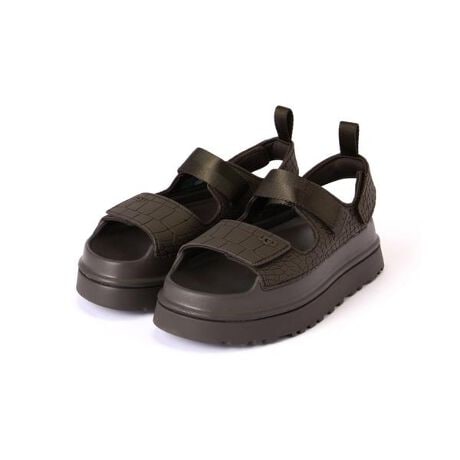 GoldenGlow Embossed (ゴールデングロウ エンボスト)サンダルは、1足ごとに表情の異なるエンボス加工のクロコ柄を採用し、個性あふれるデザインに仕上がっています。