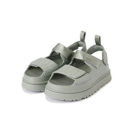GoldenGlow Embossed (ゴールデングロウ エンボスト)サンダルは、1足ごとに表情の異なるエンボス加工のクロコ柄を採用し、個性あふれるデザインに仕上がっています。