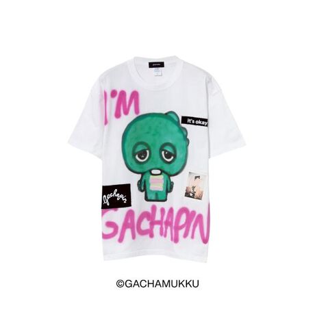 フロントには、乾シンイチロウらしい独特なスプレータッチで描かれた「ガチャピン」のアートワークを大胆に配置。