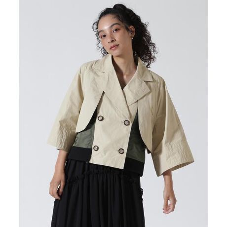 マットな質感のナイロンと光沢のあるサラッとしたナイロンのドッキングショートトレンチ。