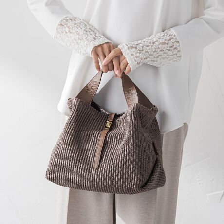 上品な風合いが魅力のラフィア調シートを使用したトートバッグ。