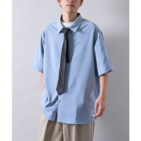 シンプルで無駄のない襟元と半袖のクリーンなシルエットに、セットのタイがほどよいフォーマル感を添える一着です。