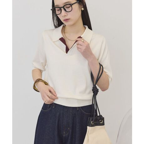 クラシカルな襟付きデザインにコントラストの効いた配色がポイントのニット。シャツのようなきちんと感にニットの柔らかさをプラスすることで、大人のリラックスカジュアルを演出します。身幅にゆとりを持たせたボックスシルエットで体のラインを拾わず、さらりとした素材はほどよい厚みがありながらも軽やかです。春先から初夏までデイリーに活躍します。定番のデニムパンツにスニーカーを合わせたカジュアルスタイルがおすすめ。