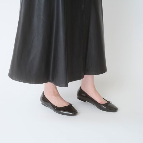 1足は持っていたいベーシックなバレエシューズ。優しくカーブしたスクエアトウは、履き心地と使い回しの良さでリピート買いも多数。