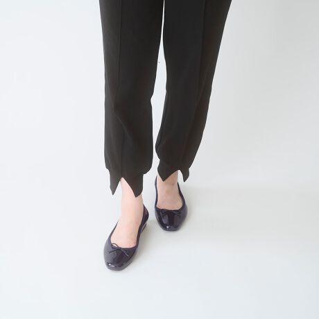 1足は持っていたいベーシックなバレエシューズ。優しくカーブしたスクエアトウは、履き心地と使い回しの良さでリピート買いも多数。
