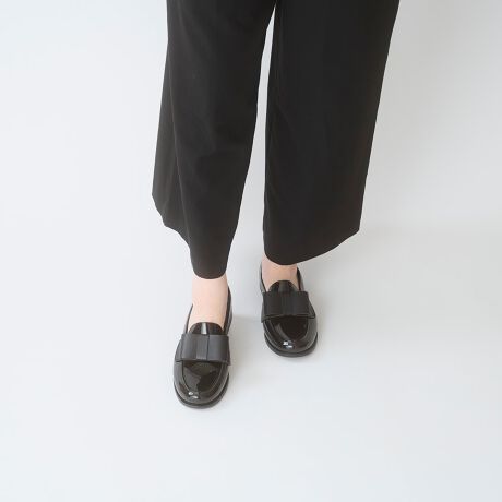 ローファーにあしらった幅広でフラットなリボンが大人可愛い一足。リボンは厚手の合成皮革製で、可愛いだけではない上品でクラシックなムードを演出してくれます。 癖のないベーシックさでスタイリングもしやすい、おしゃれ心をくすぐる一足です。
