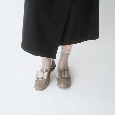 ローファーにあしらった幅広でフラットなリボンが大人可愛い一足。リボンは厚手の合成皮革製で、可愛いだけではない上品でクラシックなムードを演出してくれます。 癖のないベーシックさでスタイリングもしやすい、おしゃれ心をくすぐる一足です。