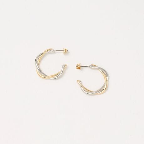 ゴールドカラーとシルバーカラーをねじったようなデザインが印象的なピアス。