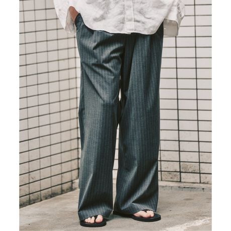 クリアな表情が特徴の、きれいめTR素材を使用したワイドイージーパンツ。