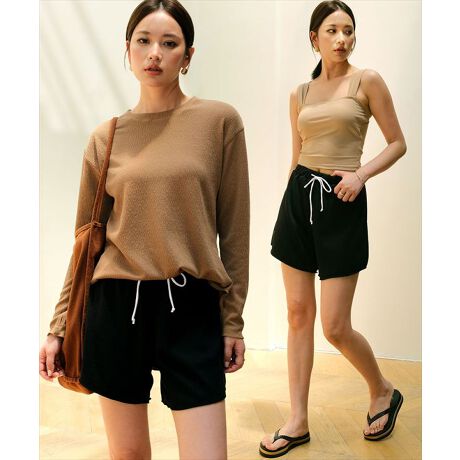 脇周りは太めなのでラフに着られ、長めの丈感とショートパンツの程良い広がりは着心地の良さを感じられます。