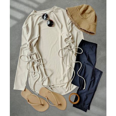 ゆったりラフに着られるラッシュガードとレギンスのセット水着。