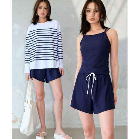 洋服のように気軽に着られるカジュアルデザインのセット水着。