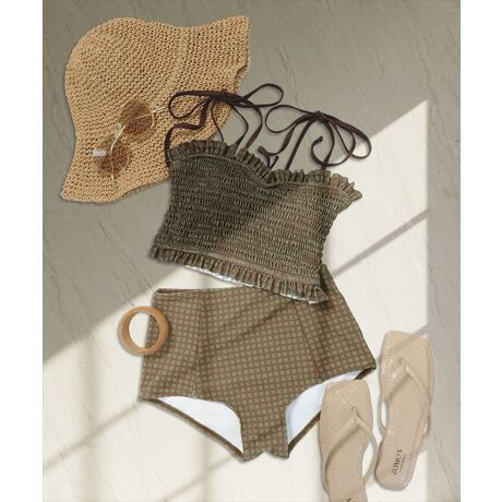 シャーリングビキニとショーツの2点セット水着。