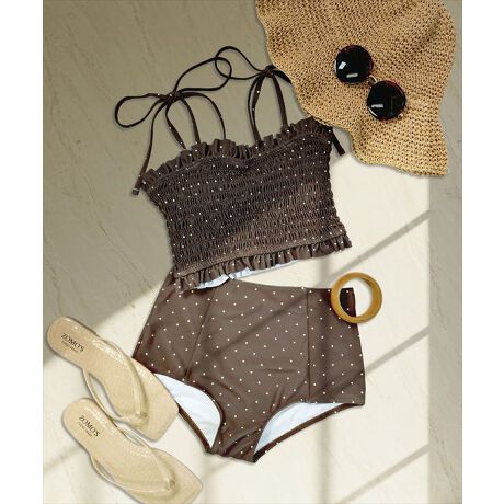 シャーリングビキニとショーツの2点セット水着。