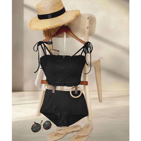 シャーリングビキニとショーツの2点セット水着。