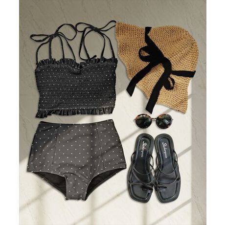 シャーリングビキニとショーツの2点セット水着。