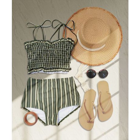 シャーリングビキニとショーツの2点セット水着。