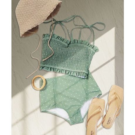 シャーリングビキニとショーツの2点セット水着。