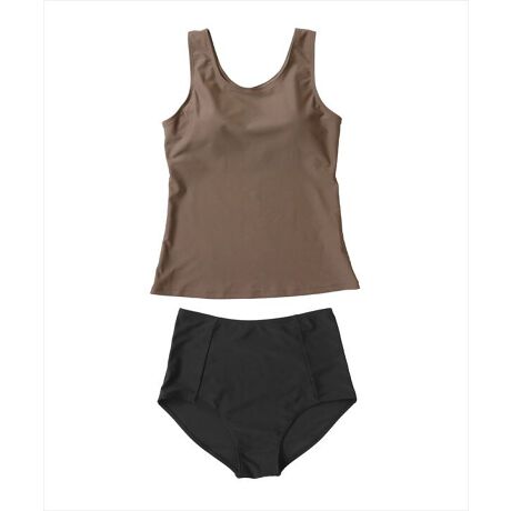 胸元、お腹をしっかり覆うタンキニは、洋服のような着やすさで体型カバーも叶うシンプルデザイン。