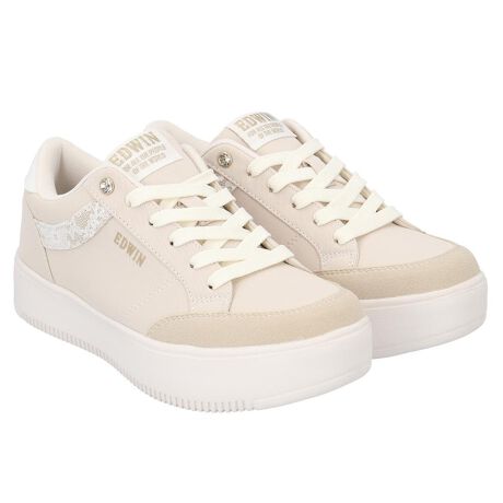 【毎日履きたい軽さと可愛さ】EDWINの軽量スニーカーで、通勤もレジャーも軽やかに。【驚くほど軽い履き心地】軽量ソールを採用しているから軽やかで一日中歩き回っても疲れにくい◎【厚底なのに歩きやすい】高さを出しつつ前後差を抑えた厚底ソールが安定した歩行をサポート♪【靴ズレしにくい柔らか設計】ふんわりクッションが足首をやさしく包み込んで、気になる靴ズレを防止〇【いつでも清潔なインソール】取り外し可能なインソールだから汚れやニオイが気になったら手軽にお手入れ!【大人カジュアルな洗練デザイン】コーデに馴染むカラーにブランドロゴとレースの飾りラインがアクセント。【キラリと光るビジュー】紐穴の一番上にちょこんとあしらわれたビジューが大人可愛さを演出♪【シューレースで微調整】紐の結び具合で多少のサイズ調節ができるから一体感のある履き心地◎