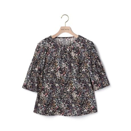 [型番:72263270812]清楚でいてリッチな表情を醸すリバティプリントのブラウス。ネックラインや袖口のタックが、上品な立体シルエットを演出。二の腕をカバーする5分袖で、春夏秋と活躍します。※商品画像はサンプルを使用しているため、実際の商品と色味などの仕様が異なる場合がございます。予めご了承ください。