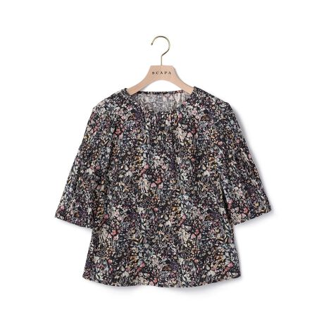 [型番:72263170812]清楚でいてリッチな表情を醸すリバティプリントのブラウス。ネックラインや袖口のタックが、上品な立体シルエットを演出。二の腕をカバーする5分袖で、春夏秋と活躍します。※商品画像はサンプルを使用しているため、実際の商品と色味などの仕様が異なる場合がございます。予めご了承ください。