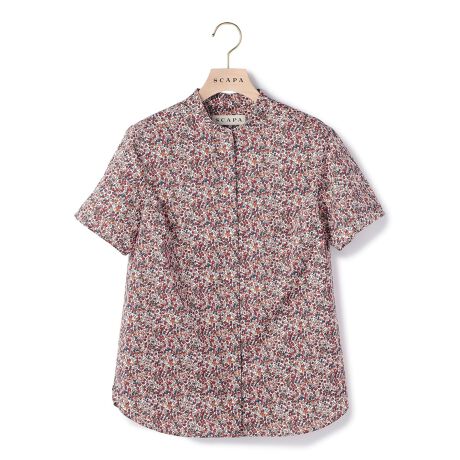 [型番:72263170811]繊細なリバティプリントが上品に映えるブラウス。バンドカラーや比翼仕立てのデザインで、ONにも似合う洗練された一着に。タックインしてもアウトでも着こなしがきまる着丈もポイントです。※商品画像はサンプルを使用しているため、実際の商品と色味などの仕様が異なる場合がございます。予めご了承ください。