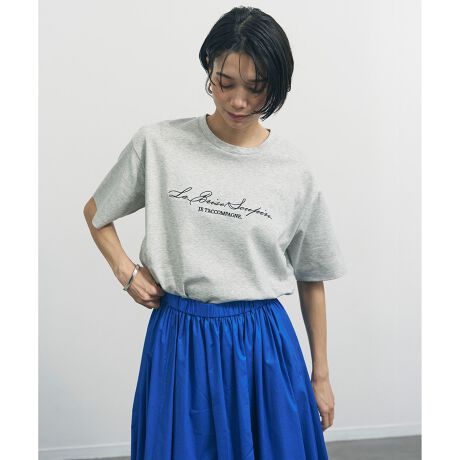光沢のあるロゴ刺繍が、コーデのワンポイントになります。カジュアルすぎないスッキリとしたネックラインで、ゆとりがありながらも綺麗に見える絶妙なサイジングに。長めの半袖が、気になる二の腕もしっかりカバーしてくれます。カラーによって異なるロゴデザインなので、気分に合わせてお好みの色や柄をお選びいただけます。ロゴの文字は、一日を快適に過ごしていただけるような前向きな言葉をアレンジしています。