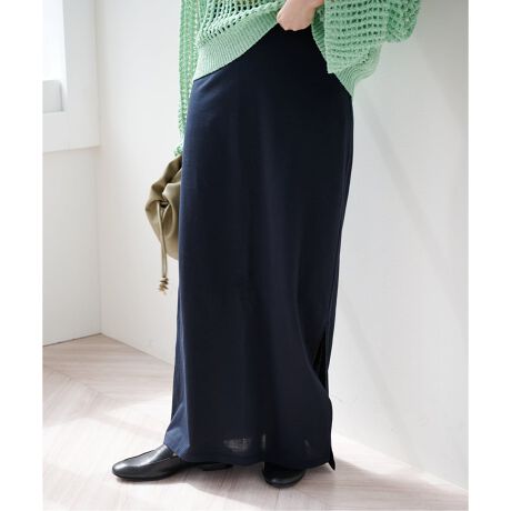 肌離れが良く、ドライタッチな風合いのサイドスリットスカート。