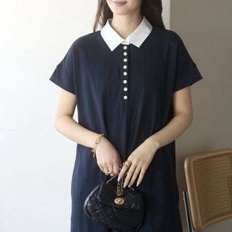 ポロシャツのような抜け感と、ワンピースの上品さを兼ね備えた1枚です。