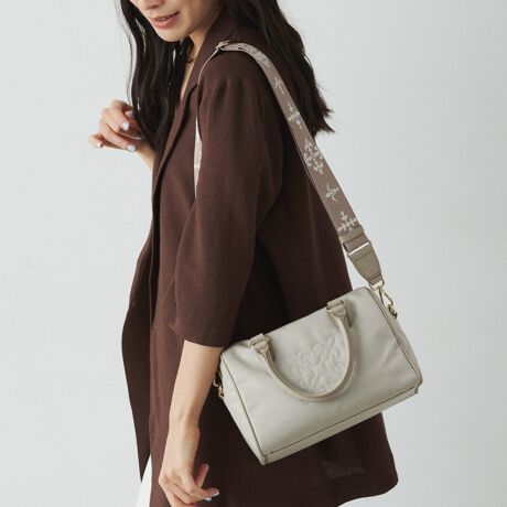丸みのあるコンパクトなボストンシルエットに、立体感のあるモノグラムをさりげなくあしらったデザイン。