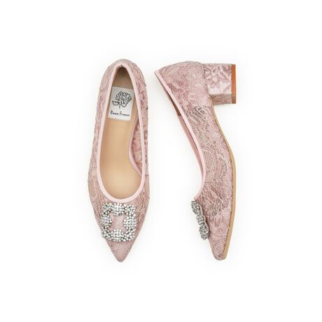 フロントにはキラキラと輝くビジューをあしらい、レースとの組み合わせが華やかで洗練された印象に。