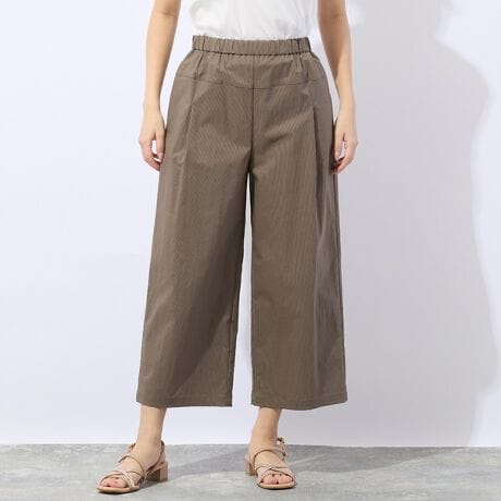 ウエストオールゴム、切り替え部分からタックが入っているためラクチンなシルエット。伸縮性に優れており履き心地の良いパンツです。
