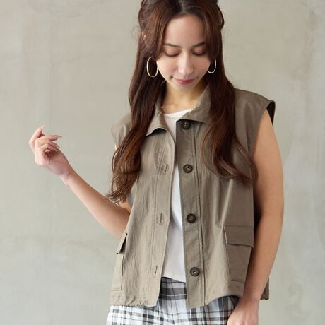 一枚仕立てで軽やかなベスト。シーズンレスで着用できるアイテムです。