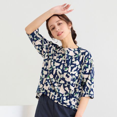 北欧風の幾何プリントがかわいらしくお洒落。一枚でもサマになるアイテムです。