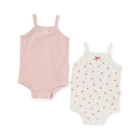 リボンがついている女の子らしいキャミソール仕様のロンパースです。
