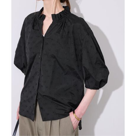 ・襟やフラワー刺繍が女性らしさを引き立てるブラウス。