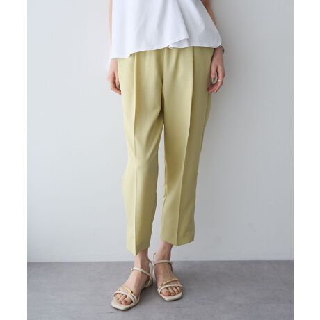 さらりとしたリネンライクな素材で汗ばむ季節にも快適なテーパードパンツ。