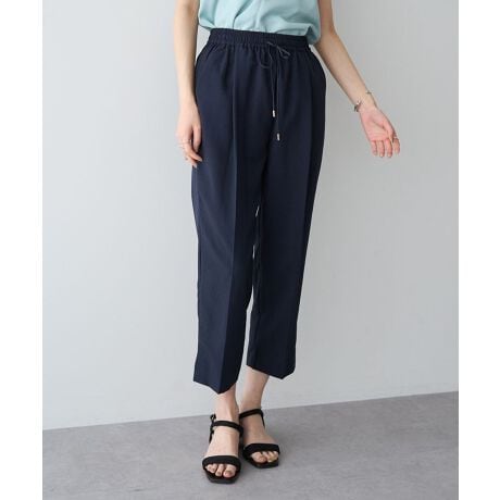 さらりとしたリネンライクな素材で汗ばむ季節にも快適なテーパードパンツ。