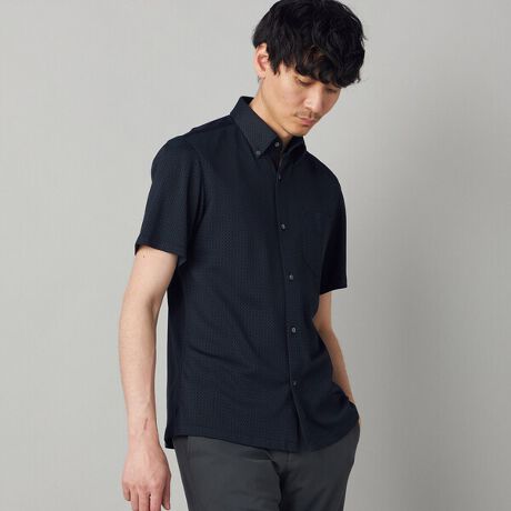 [型番:07-09HO02-206]《デザイン》ボタンダウンの半袖ドレスシャツです。ダーツをなくしてウエスト周りにゆとりを持たせています。裾をフラットにすることで、ポロシャツ感覚で着用できるのが特長です《素材》ポリエステルで織り上げた繊細な市松柄ジャカード素材です。熟練の職人による調整で作られたオリジナル素材で、細かい市松柄が特長です。軽量で、ストレッチ性があり速乾性のある快適な素材です。