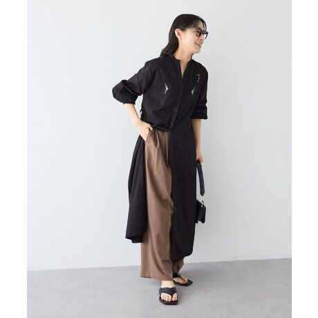 前開き仕様なのでワンピースとしてはもちろん、軽い羽織りとしても活躍し、季節の変わり目にも便利です。