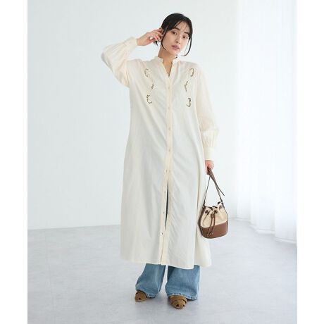 丁寧に施されたカットワーク刺繍が印象的な、ナチュラルな雰囲気漂う一着です。