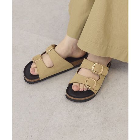 煌めくメタルバックルが目を引くフラットサンダル。ゆったりとしたフットベッドが足裏をやさしく支え、長時間の歩行でも疲れにくい設計です。上品なツヤのある合皮とほどよいボリューム感のフォルムが、カジュアルからきれいめまで幅広いコーデに映え、足元を華やかに演出します。