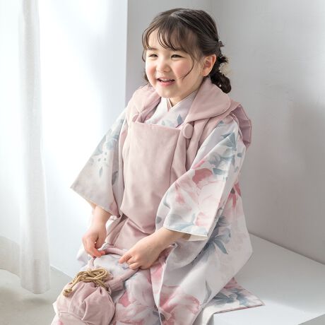 SOUBIENのプライベートブランド『floro by SOUBIEN』(フローロ)から女の子の七五三やお宮参りにおすすめな女児用の被布着物セットです。