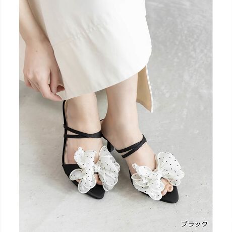 マルイウェブチャネル   /   ランダ   /   シューズ   /   サンダル   /   <26春夏新作>【22.5-25.5】シフォンリボンミュールサンダル