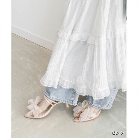 <26春夏新作>【22.5-25.5】シフォンリボンミュールサンダル