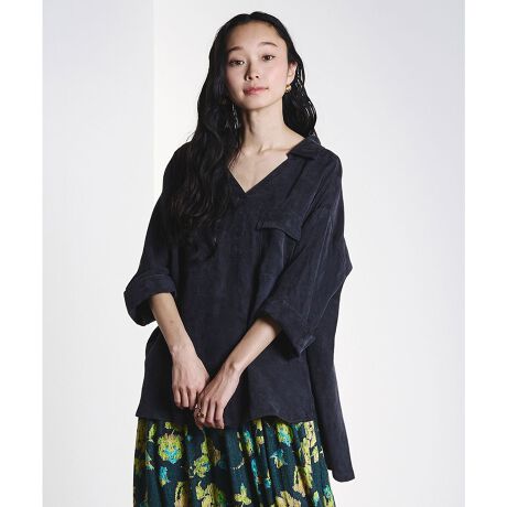 ・フィブリル生地ならではのとろみと落ち感が魅力のスキッパーシャツ