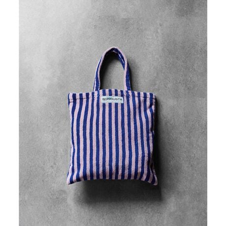 オーガニックコットンのタオル地で仕上げたストライプトートバッグ