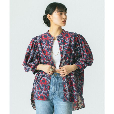 インドの職人技が光る、ギャザーたっぷりのINDIGOプリントブラウス